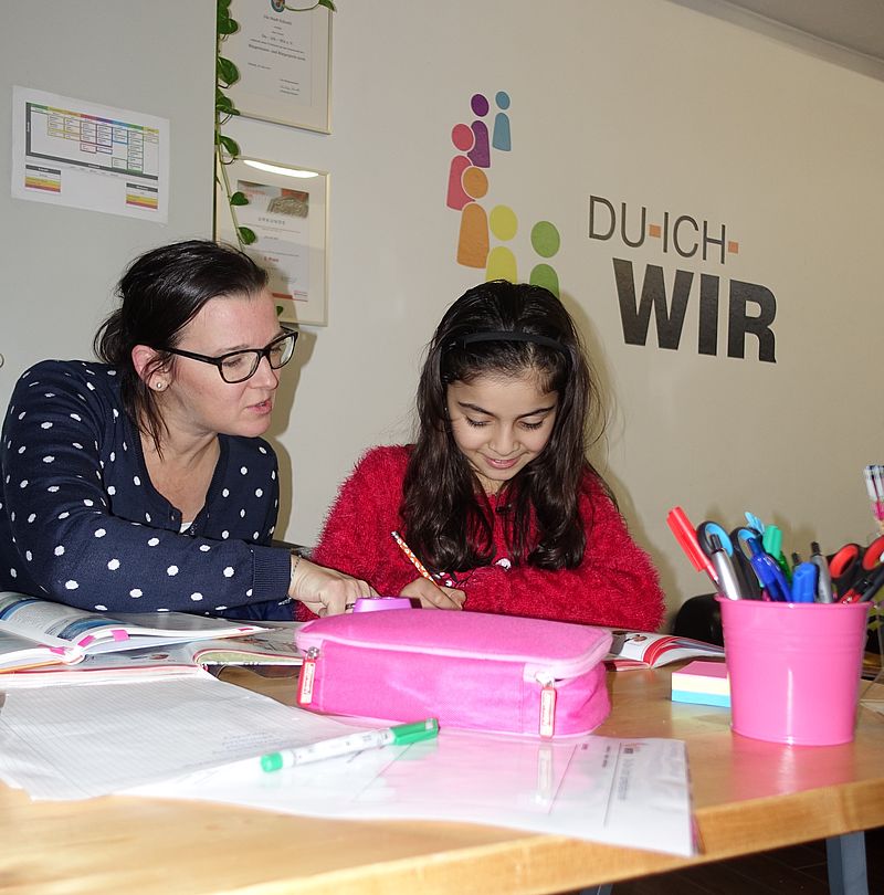 Der Verein Du-Ich-Wir e.V. ist in vier Tätigkeitsfeldern aktiv: Sprachförderung, Arbeitsmarktintegration, Umweltbildung und das Betreiben eines Lern- und Begegnungszentrums. Alle Aktivitäten des Vereins zielen darauf ab, Integration zu fördern und Chancengerechtigkeit für Menschen zu schaffen, die Ungerechtigkeit erfahren haben. Die Mitglieder des Vereins helfen Menschen mit Migrationshintergrund dabei, die deutsche Sprache zu erlernen und eine Arbeit zu finden. Zudem wird die Zielgruppe für ökologische Themen und Umweltschutz sensibilisiert. Herzstück der Arbeit von Du-Ich-Wir und Ursprung des Vereins ist die Sprachförderung. Mit drei irakischen Schülerinnen hat der Unterricht 2014 begonnen, mittlerweile werden über 100 Schülerinnen und Schüler von den gut 70 Ehrenamtlichen des Vereins unterrichtet. Der Unterricht findet ein- bis viermal pro Woche statt und ist sehr individuell: Jede Lehrkraft unterrichtet 1 - 2 Schüler und Schülerinnen. Alle Leistungen sind für die Zielgruppen des Vereins (vornehmlich Kinder und Jugendliche mit Migrationshintergrund) kostenlos. In Zukunft soll noch vielen Menschen geholfen werden! Der Verein Du-Ich-Wir möchte seine Arbeit regional ausweiten und in weiteren Städten aktiv werden (bisher sind es drei Städte: Erkrath, Mettmann und Hilden).