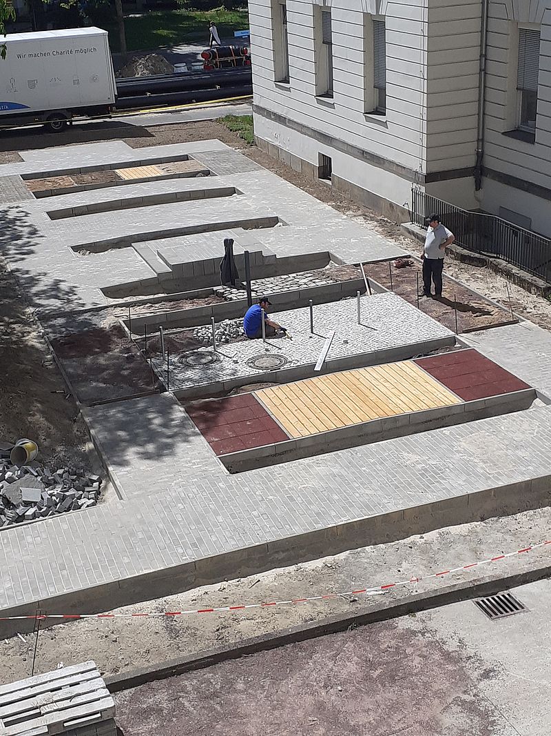Die Idee eines Rollstuhlparcours entstand aus dem Kreis der Physiotherapeutinnen und -therapeuten des Sozialpädiatrischen Zentrums der Charité-Universitätsmedizin Berlin (SPZ) im Rahmen der Behandlung neuropädiatrischer Patientinnen und Patienten. Oft ist zu beobachten, dass die Kinder den Umgang mit dem Rollstuhl mühsam erlernen müssen und im Alltag das nötige Selbstbewusstsein fehlt, damit umzugehen. Auf den Fluren des SPZ können den Kindern nur sehr eingeschränkte Möglichkeiten geboten werden, sich mit dem Rollstuhl auszuprobieren, es fehlt an Platz und entsprechenden Vorrichtungen. So war es naheliegend, am Campus Virchow Klinikum (CVK) in unmittelbarer Nähe der SPZ-Abteilung Neuropädiatrie einen Parcours zu errichten, der über verschiedene Untergründe und Hindernisse verfügt und auf dem die Kinder in geschütztem Rahmen den Umgang mit dem Rollstuhl lernen und intensivieren können. So sollen sie eigenständig werden und einen ersten Schritt in ein selbstbestimmtes Leben machen. In der Abteilung Neuropädiatrie des SPZ werden Patientinnen und Patienten mit unterschiedlichsten neurologischen Krankheitsbildern diagnostiziert, behandelt und therapiert, z.B. Spina bifida, neuromuskuläre Erkrankungen, Epilepsien, Bewegungsstörungen, chronisch-entzündliche ZNS- und neurodegenerative Erkrankungen, Zustand nach Schädelhirntrauma, Hirnfehlbildungen und weitere. Kinder mit lebenslanger Beeinträchtigung des Bewegungsapparats erhalten in der Regel im Alter von ca. drei Jahren ihren ersten Rollstuhl.