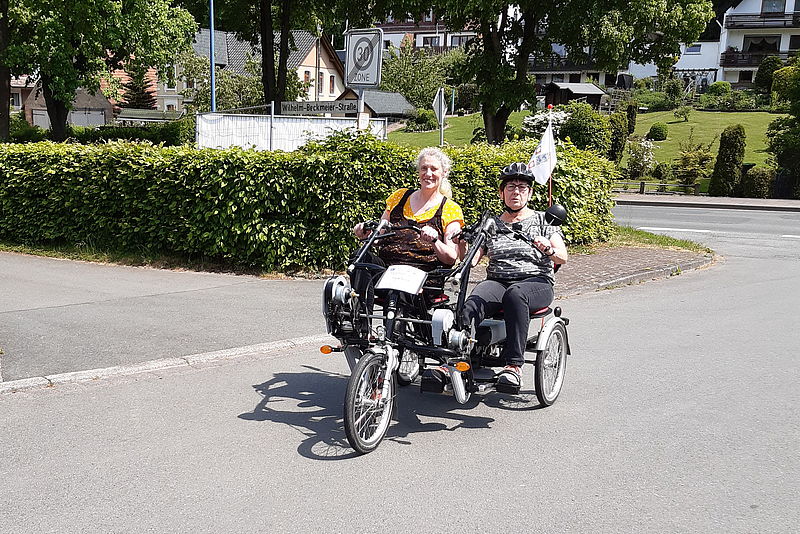 Im Zuge der großen Flüchtlingswelle Ende 2014 waren viele Menschen in unserer Gemeinde sehr hilfsbereit, und es entstand innerhalb der Caritas Schieder-Schwalenberg die “Flüchtlingshilfe”. Aus der „Flüchtlingshilfe“ im Jahr 2014 entstand 2019 die „Aktion Miteinander”. Die Caritas wollte die Hilfe nun auf weite Teile der Bevölkerung in Schieder-Schwalenberg ausdehnen und neue Projekte in den Blick nehmen. Je mehr die "Aktion Miteinander" bei der Caritas sich nun mit dem Thema „Senioren und Menschen mit Handicap“ auseinander setzte, wurde deutlich, wie viele Menschen im Alter allein oder im Seniorenheim sind. Mit der Rikscha-Aktion wollte die Caritas „Senioren und Menschen mit Handicap“ die Möglichkeit geben, ohne großen Aufwand die eigenen vier Wände zu verlassen, um einfach wieder einen anderen Blickwinkel zu bekommen, hinaus in die Natur. Das betrifft sowohl die Bewohnerinnen und Bewohner in den Seniorenheimen, wie auch alle Menschen (nicht nur mit Beeinträchtigungen) in den Privathaushalten. Viele ehrenamtliche Helferinnen und Helfer in allen Ortsteilen von Schieder-Schwalenberg waren sofort bereit, mit einer Rikscha die Menschen von zu Hause und aus den Seniorenheimen abzuholen und durch die Natur zu fahren. Ziel der Caritas ist, das Familien entlastet werden und die Kontaktarmut überwunden wird, das Menschen –auch mit Demenz- wieder neue Sinneseindrücke gewinnen, Erinnerungen an Wege und Orte aus dem früheren Leben wieder da sind; einfach Freude geben und selber Freude daran haben.