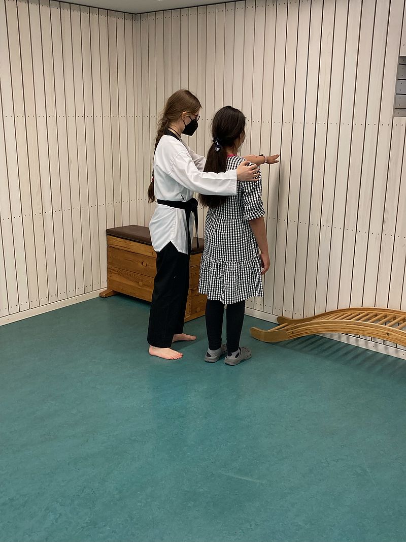 Marlene Lang engagiert sich fast zwei Jahren im Hort "August-Hermann-Francke" für Viert-Klässler. In ihrem Projekt möchte sie Selbstvertrauen und Selbstbewusstsein stärken. Diese Viertklässler sind zumeist schüchterne und ruhige Kinder, die sich wenig zutrauen. Dabei bilden der Anfang der Projektstunde Übungen mit der Stimme und der entsprechenden Körperhaltung. Beides zielgerichtet einzusetzen, war eine grundlegende Erfahrung, die eingeübt und ausprobiert werden sollte. Marlene motivierten dabei die kleinen Erfolge in den jeweiligen Stunden, die die Kinder in einer veränderten Situation zeigten: So konnte ein Mädchen ein klares "Nein!" am Ende formulieren, oder aber die Stimme vernehmlich zu einem "Stopp!". Beides fiel einigen Viertklässlern am Anfang schwer, gelang dann aber immer besser mit zunehmender Projekt-Dauer. Neben diesen kommunikativen Ansätzen konnte Marlene Lang als Schwarzgurt-Trägerin mit Taekwondo-Übungen praktisch unterstützen, was sie zuvor eingeübt hatte: Pratzen-Aktionen; kleine Fall-Übungen u.a.m. Die Stärkung des Selbstbewusstseins hat darüber hinaus auch integrative Ansätze, weil die kulturellen und sozialen Hürden überwunden werden. Der besondere Charme des Projektes wird glaubhaft durch die Schülerin, Marlene Lang, deutlich, die ihren nur wenig jüngeren Viertklässlern vermittelt, was sie selbst erfahren konnte.