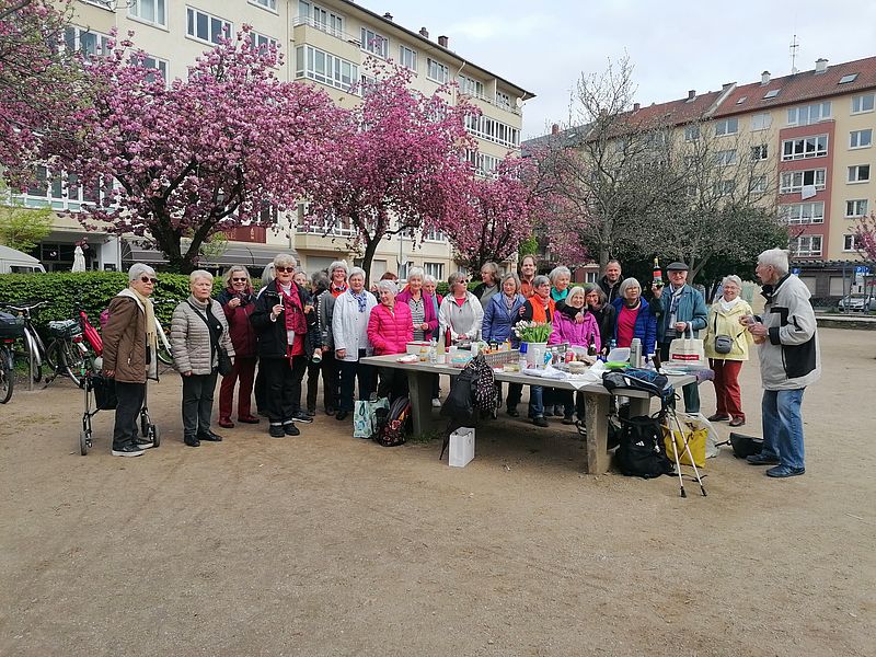 Ein Sport/Bewegungsprogramm im öffentlichen Raum, 1x wöchentlich für eine Stunde auf / mit Musik Gymnastik/Bewegung, im Freien, bei jedem Wetter, Winter wie Sommer. Es ist für jederman geeignet, egal ob jung, alt, mit Rollator, nicht sichtbaren Beeinträchtigungen, Mann, Frau, ausländischer Mitbürger. Keine Gebühr, keine Mitgliedschaft, kein An- oder Abmelden, keine Kleiderordnung. "Mitmachen, ausprobieren, gehen, wenn es nicht gefällt oder am nächsten Mittwoch wiederkommen". Dieses Konzept funktioniert prima, die Teilnehmerzahl stieg innerhalb der 8 Jahre von 4 auf bis zu 38 bewegte Menschen an, die regelmäßig kommen. Die Altersspanne reicht von 43 bis 87 Jahren. Da ein Spielplatz und ein Cafe angrenzen, werden Kleinkinder mit ihren Eltern oder Omas und Bewegungsmuffel angelockt, die ungezwungen ausprobieren bzw. mitmachen. Ziel ist Menschen in Bewegung zu bringen, Spass dabei zu haben, dranzubleiben und Bewußtsein für ihre Gesundheit zu erkennen, vorallem ältere Menschen, sich mehr zu bewegen und somit etwas für ihre Gesundheit zu tun. Ganz wichtig ist auch der soziale Aspekt, das WIR-Gefühl stärken, freundschaftliche Kontakte zu fördern, gegen die Vereinsamung zu wirken. 2 Wanderungen und 2x Picknick im Jahr verstärken dieses Ziel.