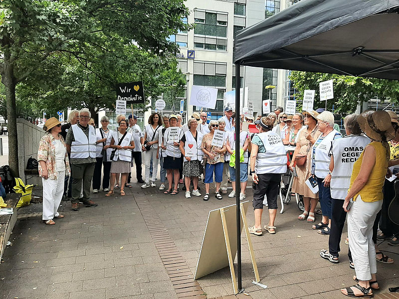 Seit Februar 2024 werden regelmäßig bei Mahnwachen Informationsmaterialien zur Wahrung von Demokratie, Menschenrechten, Freiheit und Klimaschutz verteilt. Die OMAS GEGEN RECHTS stehen gegen Diskriminierung von Menschen wegen ihrer Herkunft, ihres Geschlechtes oder ihrer Religion auf der Straße und kommen ins Gespräch und setzen uns gegen Hass uns Hetze ein. Das Hambacher Schloss wird von verschiedenen Gruppierungen für ihre angeblichen demokratischen Zwecke missbraucht. Hierzu klären die OMAS auf. Die Neustadter OMAS sind gut vernetzt mit anderen "OMAS GEGEN RECHTS"-Gruppen in der Pfalz und anderen Regionalen Bündnissen und unterstützen bei Demonstrationen und Demokratie bewahrenden Aktionen in der Region. Es geht uns besonders auch um die Stärkung von Frauenrechten, um Frauen-Empowerment und Verhinderung des Roll-Backs. Aus dem Kreis hat sich eine Gruppe "Vorlese-Omas" herausgebildet, die an Kindergärten und Schulen wirken, um dort bereits junge Menschen für die demokratischen Werte zu sensibilisieren. Die Gruppe der Bänkelsängerinnen verstärkt die Mahnwachen mit politischen Liedtexten. Eine weitere Gruppe beschäftigt sich mit dem Thema Klimaschutz.